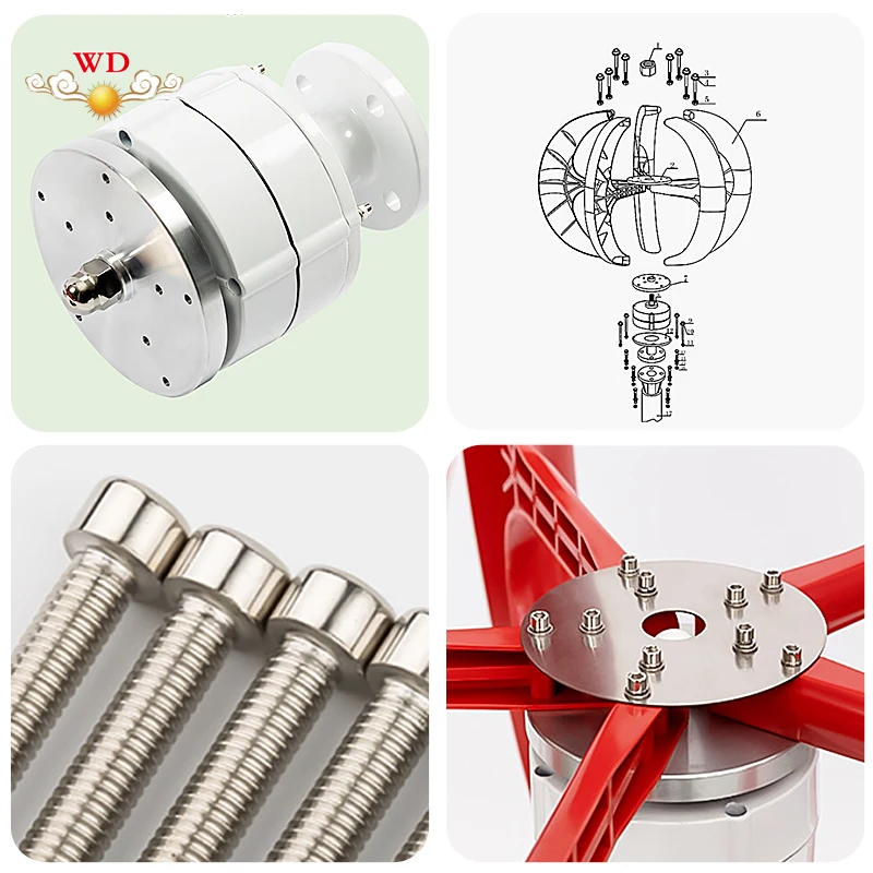 Permanent magnet synchronous generator, wind energy to electric energy higher efficiency, lower loss, self-adjust the direction with the wind. The aluminum alloy shell is light in weight and has strong stability.